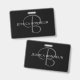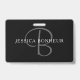 Tarjeta De Identificación Monograma nombre elegante | Blanco negro y gris