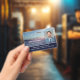 Church membership or clergy ID badge with a profile photo against a calm photo of the sun rising over a mountain skyline.
