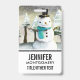 Tarjeta De Identificación Muñeco de nieve caprichoso en escena navideña de i