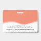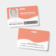 Identificación de identificación de la identificación de los servicios esenciales de salud de los naranjas de Coral con la foto de su empleado, su nombre, rol de trabajo, logotipo de la empresa, número de empleado del nombre de la empresa y código de barras para entrar en áreas restringidas. Información perdida u otra información importante sobre lo contrario. Diseño por www.mylittleeden.com