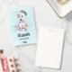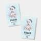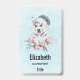 Insignia de nombre personalizada con una pintada de acuarela original y bonita de un perro descascarillado con un sombrero azul de Santa.