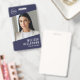 The back includes a dedicated space for your company’s return information, with the message: “If found, please return to [business address],” helping ensure the badge is returned if lost. The high-contrast navy and white layout, combined with minimal typography, keeps the design sharp and easy to read. This customizable badge is a practical and stylish option for any professional setting.