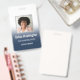 Sleek Navy Blue Personalized Employee Company ID Badges. It contains a customizable name and title, company address and additional information. A custom employee photo, image, picture, or photograph.