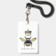 Una insignia de abeja reina y corona para tu tienda, puesto de granja o eventos para un apiario, fabricante de productos de miel, fabricante de velas, fabricante de jabón u otros productos derivados de la miel para llevar en eventos. Agrega el nombre de tu negocio.