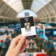 Haga una declaración en negrita con este diseño de tarjeta de identificación minimalista. Con un fondo negro limpio, este diseño permite que su foto y su logotipo ocupen el centro del escenario. Perfecto para profesionales, estudiantes o cualquier persona que quiera un documento de identidad moderno y sofisticado.