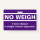 Una herramienta útil a transportar a los proveedores que usted ha elegido un acercamiento neutral del peso y no quiere saber su propio peso. Esta insignia se puede dar fácilmente a, o considerar cerca, una enfermera o un proveedor como un recordatorio no verbal para no pesarle (o no compartir con usted esos números del peso). Este producto es conveniente ser llevado o ser mantenido una cartera. Este producto es doble echado a un lado.