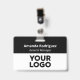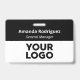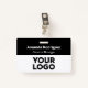 Haga que su negocio parezca profesional con insignias de nombre personalizadas que incluyan el logotipo de su empresa, el nombre de su empleado y el título de su trabajo. Personalizar en la barra lateral. El nombre de la persona del personal aparece en la parte superior en negrita y en blanco, con el título del trabajo o el texto personalizado debajo, en una letra cursiva blanca sobre un fondo negro. La mitad inferior de la insignia muestra su logotipo en un fondo blanco. Su logotipo puede ser rectangular, circular, cuadrado u otra forma y cualquier color. Puede cambiar el fondo y los colores del texto para que coincidan con su marca pulsando "haga clic en el personalizar más adelante". También puede cambiar el clip metalizado a un patio, un accesorio retráctil o ninguno en la barra lateral. Vea más elementos a los que puede añadir su logotipo en la colección de Artes Rocklawn. Copyright ©Claire E. Skinner. Todos Los Derechos Reservados.