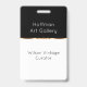 Las insignias con clase de la identificación del nombre del personal de la galería o del museo de arte en negro clásico en blanco con un oro coloreado diseñan el elemento que añade que tacto de la clase. Diseñado tan le puede modificar las etiquetas para requisitos particulares conocidas en línea y deja el espacio para un logotipo o una marca de la compañía.