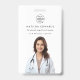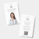 Una elegante insignia mínima de identificación de empleado con tipografía clásica sobre un simple fondo blanco minimalista. El texto, el logotipo y el código QR se pueden personalizar fácilmente para que un toque profesional coincida con la marca de su clínica y se fundan bien en un entorno médico-profesional. Un diseño sencillo, minimalista y contemporáneo para un ambiente hospitalario, clínico o médico.