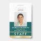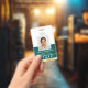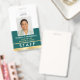 Crear una apariencia profesional con esta tarjeta de identificación personalizada del personal. Una plantilla sencilla y elegante con su foto de identificación, nombre, cargo, número de empleado, logotipo de la empresa y código QR escaneado. Todo el texto se puede personalizar o eliminar para adaptarlo a sus necesidades empresariales. Este elegante diseño se adaptaría a muchos lugares de trabajo y profesiones diferentes, incluyendo vendedores minoristas, empleados de restaurantes y servicios alimenticios, personal de oficina, pequeñas empresas, etiquetas de nombres de conferencia y más! Colores impresos: verde verde azulado y blanco con un gradiente dorado.