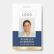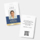 Crea una apariencia profesional con esta tarjeta de identificación personalizada. Una plantilla sencilla y elegante con su foto de identificación, nombre, cargo, logotipo de la empresa y código QR escaneado. Todo el texto se puede personalizar o eliminar para adaptarlo a sus necesidades empresariales. Este elegante diseño se adaptaría a muchos lugares de trabajo y profesiones diferentes, incluyendo profesionales corporativos, vendedores minoristas, consultores de belleza, personal de hotel, pequeñas empresas, etiquetas de nombres de conferencia y más! Colores impresos: color azul oscuro y blanco con un gradiente de oro falso.