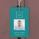 Tarjeta De Identificación nombre de la foto en verde azulado código QR logot