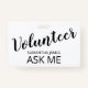 Un voluntario moderno me pide una placa de nombre para empleados, voluntarios y personal de eventos. Personalizar con su nombre. Tipo de script de moda. Moderna, moderna, sencilla y de uso general.