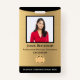 Nombre del empleado Código de la barra fotográfica Logotipo Tarjeta de identificación negra de oro para profesionales de negocios y contratistas independientes, organizaciones y otros empleados en varias empresas. El ID Badge informa a los clientes, clientes y otras personas de quiénes eres y para quiénes trabajas. Reemplace la fotografía y la información con la suya para cada persona de su organización o negocio. La tarjeta de identificación es elegante, dorada y negra, moderna y de moda.