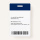 Crea tu propio personalizado, plástico de PVC personalizado y duradero, no se desvanecerá ni se rasgará, moderno y moderno diseño marino azul y blanco, placa de identificación de foto con nombre, con opciones de accesorio - patio, clip metalizado, retráctil o ninguno. Para personalizar, introduzca el nombre del empleado / empleado / ejecutivo, su designación, y cualquier información adicional como el ID del empleado, fecha de emisión y expiración del insignia, si se pierde retorno a y la dirección, etc. A continuación, añada la foto del empleado / empleado / ejecutivo, añada el logo de la empresa / negocio, y añada el código de barras. Mientras teclea/diseñe, podrá ver una previsualización de su insignia, a lo largo de todo. Ideal para pequeñas empresas, empresas, escuelas, restaurantes, oficinas, conciertos, comercios, hospitales, clínicas, y para empleados, personal, médica, profesor, estudiante.