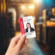 Personalice fácilmente esta insignia de identificación fotográfica profesional para empleados con sus datos personalizados.