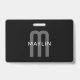 Tarjeta De Identificación Nombre monograma de aspecto moderno | Negro Gris B