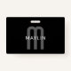 Tarjeta De Identificación Nombre Monogramado de aspecto moderno | Blanco gri