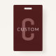 Tarjeta De Identificación Nombre Monogramado de aspecto moderno | Maroon Red