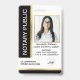 Moderna y elegante placa Notaria Pública. El diseño incluye su foto, logotipo, detalles en la parte delantera y detalles de contacto adicionales en la parte posterior. Perfecto para agentes de firma de préstamos, notarios móviles, notarios públicos, etc.
