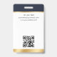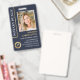 Crea una apariencia profesional con esta insignia de identificación de Notario Público. Un diseño elegante que presenta una pluma de ave dentro de un símbolo en forma de sello. Esta plantilla está personalizada con su foto de perfil, nombre, información de servicio, información de contacto y un código QR. Una mezcla clásica de estilos tradicionales y contemporáneos, que crea una estética elegante y amigable. Texto totalmente personalizable para adaptarse a la marca de su negocio. Perfecto para un Notario Público, Agente de Firma de Préstamos, Agente de Entrega de Confianza Notarial Certificado (CNTDA), Notario Móvil, Apostilla o otro profesional legal. Colores impresos: Azul Medianoche oscuro (azul-negro), negro, blanco y elementos de color dorado. ¡Compre en la colección en línea para obtener más ideas de productos populares y suministros, diseñados para notarios!