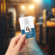 Tarjeta De Identificación Ocean Blue, Id. de foto de empleado con código QR,