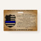 Tarjeta de oración de los oficiales de la policía de la Línea Azul - Diseño de la bandera norteamericana en colores con bandera de la policía, diseño rústico de madera afligida.