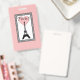 Ilustración de París con la Torre Eiffel y decoración de corazón en cuadrados negros y blancos sobre fondo rosa