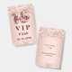 Una moderna, elegante y glamorosa insignia VIP para una fiesta de 15 años de Quinceañera. Un subió dorado decorado con confeti. Con el texto: VIP. Personalice y agregue los detalles de nombre y fiesta.
