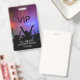 Plantilla de insignia de pase VIP de acceso total para conciertos y grandes eventos para personalizar con un fondo de multitud de asistentes al concierto y luces de colores con texto superpuesto en blanco. Personalice para VIP, personal, prensa u otros usos, agregue otra información del evento en el reverso de la insignia en letras blancas sobre negro.
