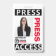 Pase de prensa profesional. Agregue cualquier negocio y nombre del empleado, foto, logotipo y código de barras.