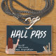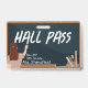 Pase de sala de clase con profesor escribiendo en la pizarra de la clase. Viene con accesorio de cordón. Ideal para aulas de escuela primaria y secundaria. Personalícelo agregando el nombre del profesor, grado y número de aula.