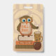 Una tierna insignia de paso para una sala de estudiantes que presenta un búho adorable en tonos naranjas y marrones. Personalízalo con el nombre del profesor. © ArianeC Ilustraciones-Todos los derechos reservados