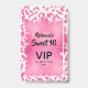 Un elegante Relieve metalizado de imitación rosa sobrepone un patrón de estampado de leopardo blanco y rosa salvaje en esta dulce invitación de 16 años de fiesta de invitados VIP impresa en una insignia de plástico única - pedido con o sin un patio. COINCIDIENDO elementos de nuestra colección.