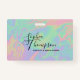 Tarjeta De Identificación Pastel de arcoiris con escritura holográfica moder