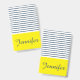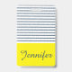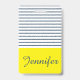 Patrón de rayas moderno blanco, azul y amarillo con nombre personalizado