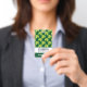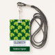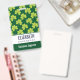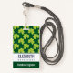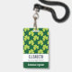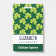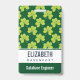 La insignia de nombre personalizada con un bonito patrón repetitivo de trébol verde oliva sobre un fondo verde oscuro.