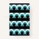 Ilustracion de patrones geométricos con rayas, círculos y formas redondeadas en color turquesa, negro y blanco