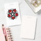 Pentagrama negro con estampado, decorado con rosas rojas florecientes con hojas sobre fondo blanco. Estilo tatuaje.
