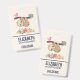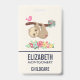 Placa de nombre con una ilustración de un lindo perezoso marrón colgando boca abajo. Este pequeño tipo divertido se agarra a una rama que tiene un pequeño pájaro rosa en
