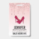 Un diseño moderno y de moda con un nombre. El fondo tiene una imagen de goteo de purpurina rosa brillante, en la parte superior. El resto del fondo es un delicado degradado de color rosa pastel. Un par de tacones rosados le dan un toque de diseño. Una elegante línea divisoria separa tu nombre y profesión.