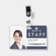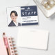 Una insignia de identificación de negocio para empresas que incluye una foto personal, el logotipo de la empresa y el nombre de la empresa. También incluye una categoría para identificar al personal, los visitantes o los invitados. Además, incluye un nombre de persona y ocupación, así como un código de barras de identidad opcional. Esta tarjeta de identificación de foto corporativa es ideal para cualquier empresa que desee identificar a su personal, visitantes o invitados.