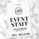 Tu logotipo Fondo blanco Fuentes negras Pases de acceso total para personal de eventos.
