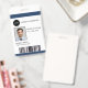 Un diseño elegante y profesional de tarjeta de identificación de empleado personalizada perfecto para empresas, organizaciones y compañías. Esta credencial incluye espacio para la foto del empleado, nombre, cargo, identificación de empleado, código de barras y año de validez. La parte posterior presenta detalles de la empresa, sitio web e información de contacto para una fácil identificación en caso de pérdida.
