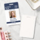 Una insignia de identificación de maestro personalizada minimalista moderna con logotipo de la escuela, foto y detalles. Personalice con su logotipo, foto y detalles para crear su propia y elegante insignia comercial blanca única.