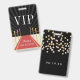 Crea un ambiente de glam hollywoodiense en la celebración del bat mitzvah con estos pases VIP personalizados. La insignia de personalizable incluye una alfombra roja y fondo de cuerda de terciopelo con "VIP" y dos líneas de texto personalizado. Añada texto adicional al reverso, coronado con puntos de confeti dorados y de color negro. Los distintivos también se pueden personalizar con el nombre de cada huésped individual si lo desea.