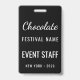 Insígnia de personal de código QR de foto del Festival de Chocolate personalizada con un diseño elegante en blanco y negro. Ideal para el personal del festival, voluntarios y equipo que necesitan identificación clara en eventos de chocolate, festivales gastronómicos y ferias comerciales. Personalizado para uso profesional en eventos.
