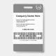 Banda de identificación corporativa de impresión gris moderna. Añade cualquier nombre comercial y de empleado, foto, logotipo, dirección, número de teléfono, años, sitio web y código de barras.