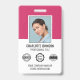 Crear una apariencia profesional con una etiqueta de identificación de empleado. Esta plantilla editable se puede personalizar con su foto de perfil, nombre, cargo, logotipo de la empresa y símbolos de acreditación. Los detalles de devolución están en la parte posterior, junto con información adicional, y un código de barras o código QR. Perfecto para crear una experiencia de marca cohesiva, o simplemente para verificar la identidad del usuario y mostrar sus calificaciones. Esta insignia de identificación es ideal para funciones de cara al cliente y entornos corporativos, desde consultores de negocios y tiendas minoristas hasta profesionales médicos, personal hospitalario, trabajadores de oficina, equipos de conferencias, eventos corporativos y más. Las insignias de los personalizados generan identidad de marca y mejoran la seguridad. Colores impresos: rosa, negro y blanco.