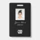 Personalice fácilmente este distintivo de nombre de empleado del Personalizado con foto, código de barras de exploración y logotipo comercial. Un diseño de negocios elegante y sencillo, con colores en blanco y negro, personalizable completo en tamaños frontales y traseros, diseño elegante del guión de caligrafía y el clásico tipo de letra del serif de Garamond para un aspecto profesional y sofisticado. Disponible con patio, clip metalizado o retráctil. Sin orden mínima.